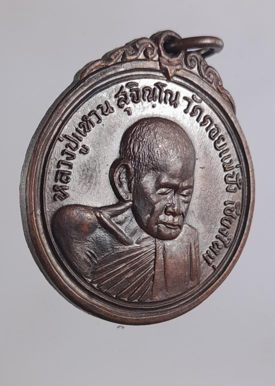 เหรียญสร้างเจดีย์84หลวงปู่แหวน วัดดอยแม่ปั๋งจัดสร้าง พ.ศ.2517 อ.พร้าว จ.เชียงใหม่ |