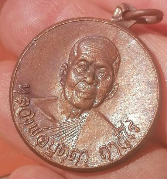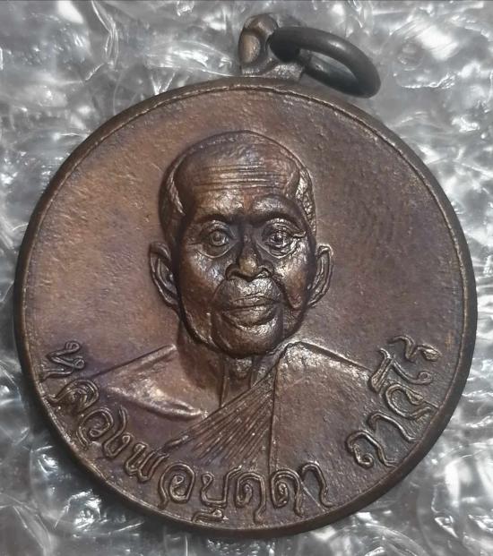 เหรียญกลมรุ่น ๔ ม.๑ เนื้อทองแดง หลวงปู่บุดดา ถาวโร วัดกลางชูศรี จ.สิงห์บุรี ปี 2520 (หูเหรียญปั้มเขยื่อนตามรูป)