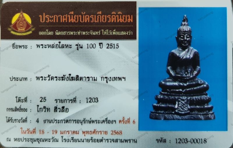บัตรรับรองรองพระเคื่อง สถาบันการันตรีพระ