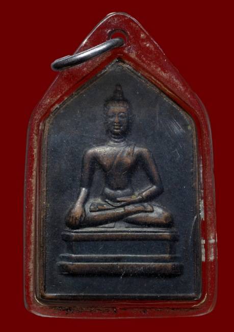 เหรียญพระเชียงแสนสิงห์หนึ่ง หลังลายเซ็น จอมพล ป.พิบูลสงคราม (พิธีวัดสุทัศน์ฯ เจ้าคุณศรีสนธิ์ ปลุกเสก) ปี 2494 เนื้อทองแดงรมดำเลี่ยมเก่า