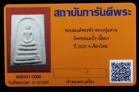 วัดใจ สมเด็จอรหัง หลวงปู่แหวน สุจิณโณ ปี 2520 สวยเดิม มีกล่อง+บัตร G