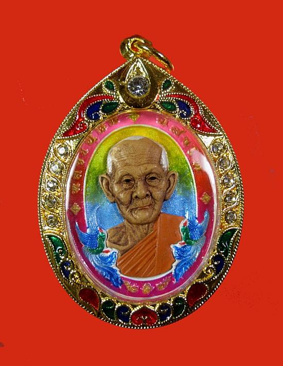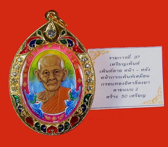 - เหรียญ"โชคดี" หลวงปู่ฝั้น ปสาโท วัดศรีถมอรัตนฺ์ (วัดหน้าผา) จ.เพชรบูรณ์ "" เหรียญเพ้นท์ลาย หน้า-หลัง หน้ากากเพ้นท์เสมือน กรอบทองอิตาลีลงยาลายแบบ 2 สร้าง 50 เหรียญ เลข ๒๙