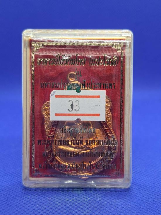 เซียนแปะโรงสี อ.โง้วกิมโคย เสมารุ่นมหาสมปรารถนาฟ้าประทานพร เนื้อทองแดง ลงยาเขียว แดง เคาะเดียว |