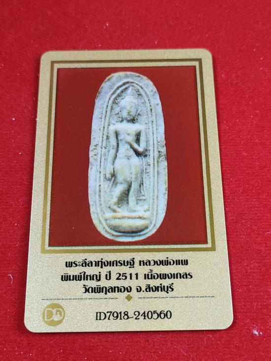 พระลีลาทุ่งเศรษฐี หลวงพ่อแพ เนื้อผง พิมพ์ใหญ่ วัดพิกุลทอง จ.สิงห์บุรี ปี 2511 พร้อมบัตรรับรอง