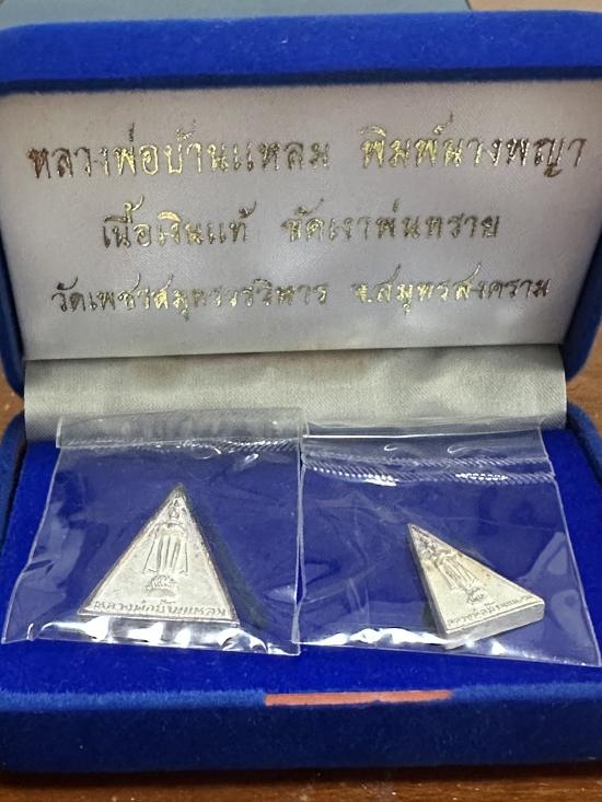 รายละเอียด วัดใจแดงแรก หลวงพ่อบ้านแหลม พิมพ์นางพญา (คู่) ตามรูป เนื้อเงินแท้ ขัดเงาพ่นทราย (นน.16กรัม) วัดเพชรสมุทรวรวิหาร จ.สมุทรสงคราม ปี 2546 พร้อมกล่องเดิม พระสวยๆอยู่ในซีลเดิมจากวัด เงินราคากำลังขึ้นไปถึง 130บาท/กรัม วัดใจได้เท่าไรเอาเท่านั้น รับประกันตามกฏ