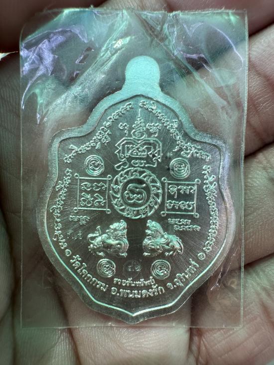 เหรียญ รวยรับทรัพย์ หลวงปู่รอด วัดโคกกรม เนื้อกะไหล่เงิน ลงยาเหลือง หมายเลข ๔๖ พร้อมซีลเดิม