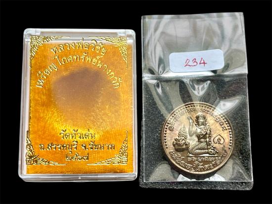 เหรียญโภคทรัพย์ "นางกวักหลังหนุมาน" หลวงพ่อวิชัย วัดหัวเด่น "เนื้อนวะโลหะ" เลขเรียงสวย "234"