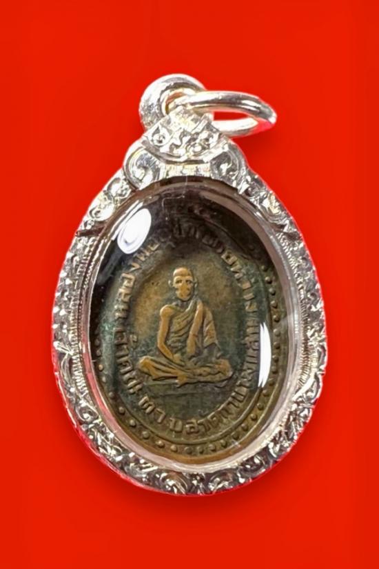 เหรียญรุ่นแรก ลพ.หว่าง (พระครูสุกิจธรรมสร) วัดกำแพงแสน ปี 2482 นครปฐม สภาพเดิม เลี่ยมเงิน