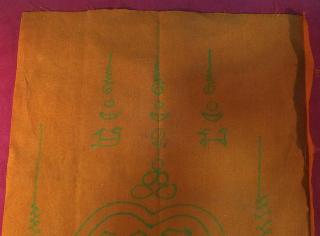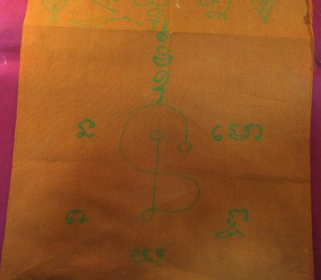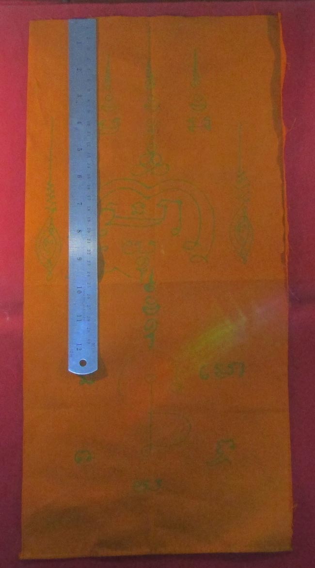 ผ้ายันต์ ไม่ทราบที่ จารยันต์ด้วยมือ ผ้าจีวร ครับ