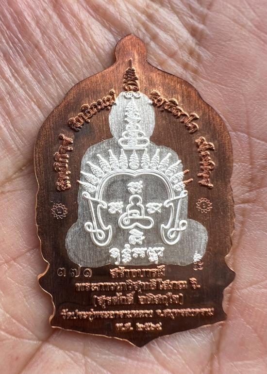 เคาะแรกแดง!!!!เหรียญนั่งพาน "รุ่นสร้างบารมี" พระมหาสุรศักดิ์ วัดประดู่ จ.สมุทรสงคราม เนื้อนวโลหะสอดเงิน หมายเลข371 (เลขมหามงคล)พร้อมกล่อง