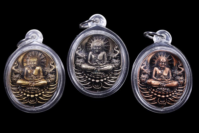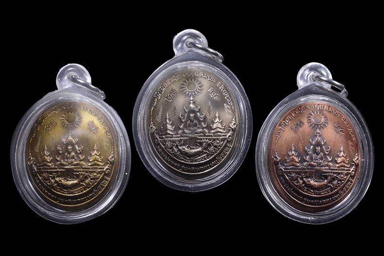 เหรียญหลวงปู่ทวดรุ่น "อภิเมตตา มหาโพธิสัตว์" พิมพ์เล็ก 3 องค์ หมายเลข 749 พระสวย เลี่ยมเก็บ ไม่ผ่านการใช้