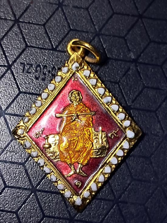 รายละเอียด เหรียญสี่เหลี่ยมข้าวหลามตัด สมเด็จโต เนื้อกะไหล่ทองลงยาสีแดง