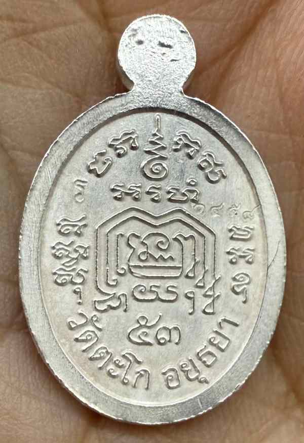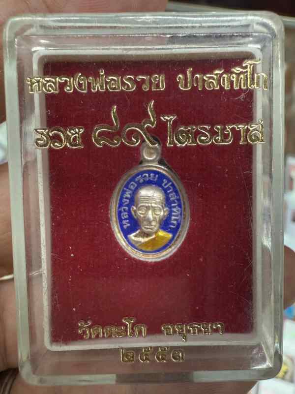หลวงพ่อรวย วัดตะโก จ.อยุธยา เม็ดแตงรุ่นแรก ปี 2553 เนื้อเงินลงยาสีน้ำเงิน พร้อมกล่องเดิม