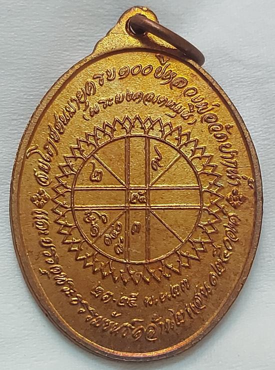 เหรียญพระมงคลเทพมุนีที่ระลึกสมโภชชนมายุครบ 100 ปี หลวงพ่อวัดปากน้ำ และบรรจุพระธรรมขันธ์ พ.ศ. 2527 บล็อคกษาปณ์ เนื้อทองแดง ผิวไฟ สวยแดงมากๆ