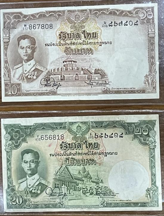 ++++100+++++ธนบัตร10บาทและ20บาท รวม2ฉบับ สภาพผ่านใช้ ไม่มีขาด/รูครับ |