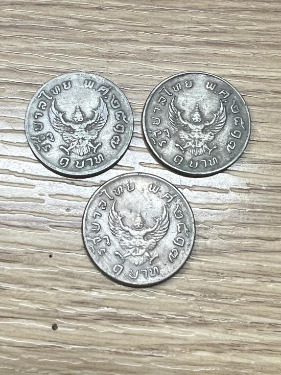 +++ เหรียญ 1 บาท มหาบพิธ เหรียญครุฑปี 17 ผ่านใช้ จำนวน 3 เหรียญ +++6