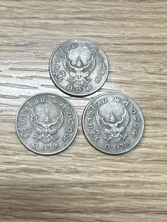 +++ เหรียญ 1 บาท มหาบพิธ เหรียญครุฑปี 17 ผ่านใช้ จำนวน 3 เหรียญ +++7