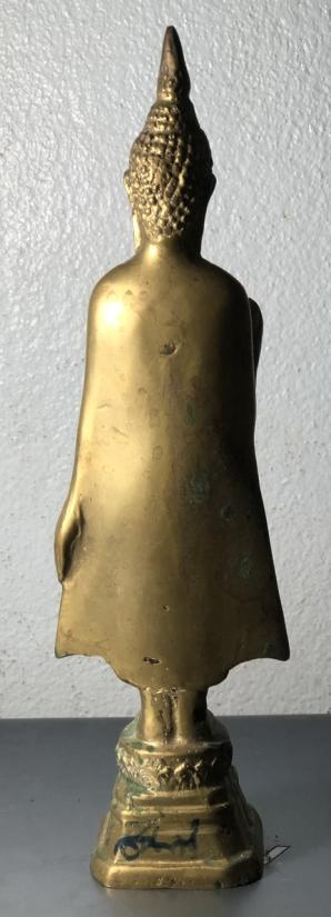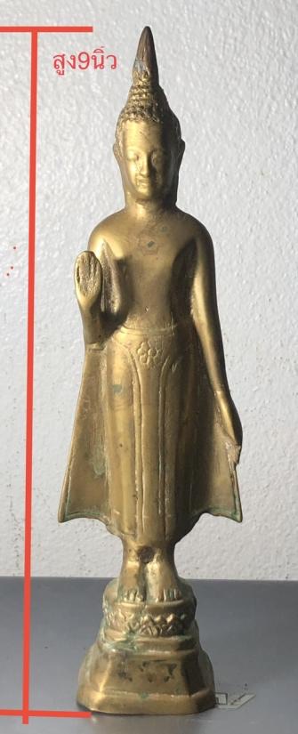 พระบูชา ยุครัชกาล ปางประทานพร เนื้อทองเหลือง ก้นอุดดินไทย ความสูง 9 นิ้ว