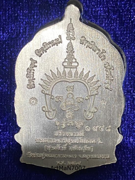 เหรียญนั่งพาน "รุ่นสร้างบารมี" พระมหาสุรศักดิ์ วัดประดู่ จ.สมุทรสงคราม เนื้อเงิน หมายเลข1948 พร้อมกล่อง