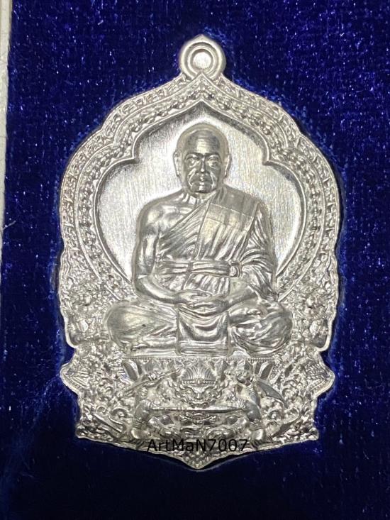 เหรียญนั่งพาน "รุ่นสร้างบารมี" พระมหาสุรศักดิ์ วัดประดู่ จ.สมุทรสงคราม เนื้อเงิน หมายเลข 1785 พร้อมกล่อง