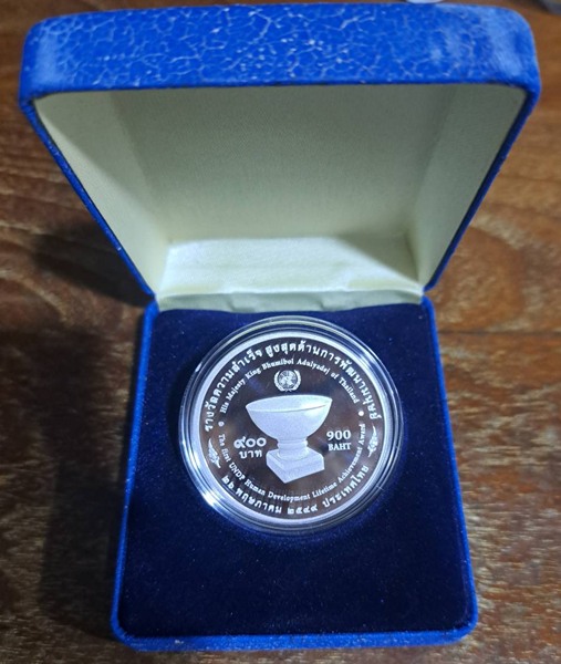 เหรียญเงินขัดเงา UNDP รางวัลความสำเร็จสูงสุดด้านการพัฒนามนุษย์ ปี2549 สภาพสวยกล่องเดิมๆเก่าเก็บ