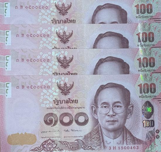 ++++430++++ธนบัตร100บาท เลขเรียง 4ฉบับ ไม่ผ่านใช้ ไม่พับ/งอ ขาวสวย |