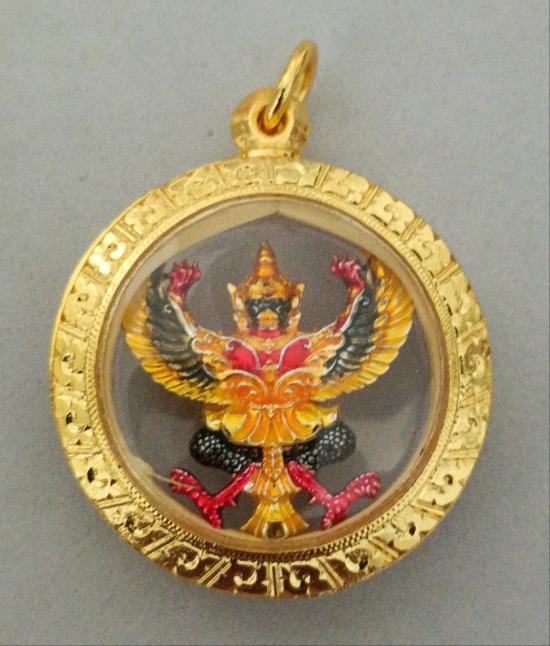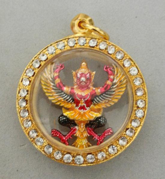 วัดใจเคาะเดียวแดงจ้า พญาครุฑ หลวงปู่อิ่ม วัดทุ่งนาใหม่ เนื้อชุบเงินลงยา พร้อมกรอบชุบทองฝังเพชร เคาะเดียวแดงจ้า