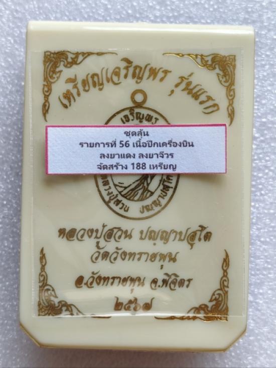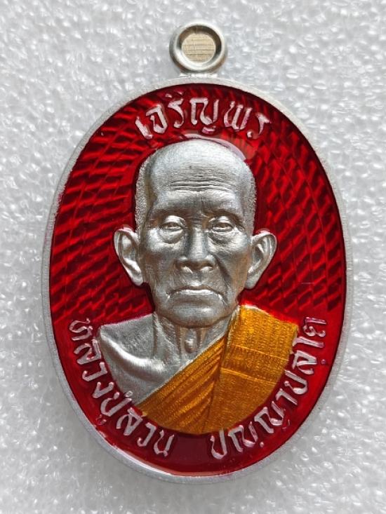 เหรียญเจริญพร รุ่นแรก หลวงปู่สวน วัดวังทรายพูน เนื้อปีกเครื่องบิน ลงยาแดง ลงยาจีวร สภาพสวย พร้อมกล่องเดิมครับ