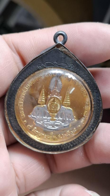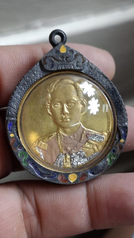 เหรียญเฉลิมพระเกียรติพระบาทสมเด็จพระเจ้าอยู่หัวรัชกาลที่ 9 ในโอกาสฉลองสิริราชสมบัติครบ 50 ปี (กาญจนาภิเษก) เมื่อปี พ.ศ. 2539 เนื้อ3K เลี้ยมเงินยกซุ้ม |