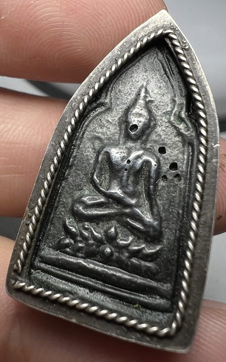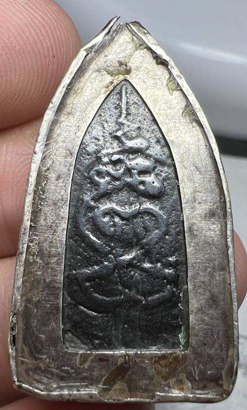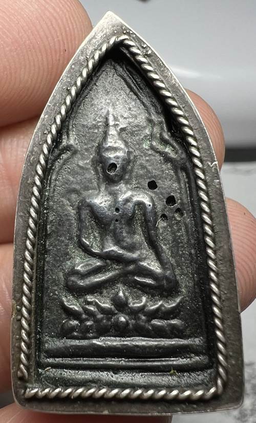 พระซุ้มประตู หลวงปู่ใจ วัดเสด็จ เนื้อเมฆพัด ปี2470 เลี่ยมเงินเก่าๆครับ