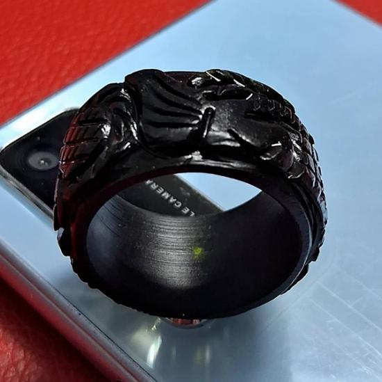 2.แหวนหยกดำแกะลายมังกร หยกพม่าแท้ 100 % (แสงส่องผ่าน) เส้นผ่าศูนย์กลาง 2.3 ซม. หนา 1.4 ซม. หายากวงใหญ่ๆ