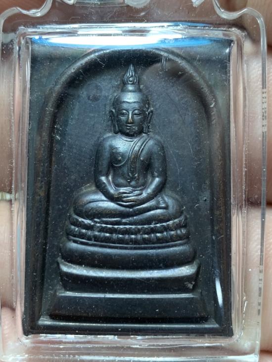 สมเด็จพระพุทธนวมมหาราชายุจฉับปริวัตนมงคล หลัง ภปร. 72 พรรษา เนื้อทองแดงรมดำ ตอกโค้ด เลี่ยมกันน้ำอย่างดี