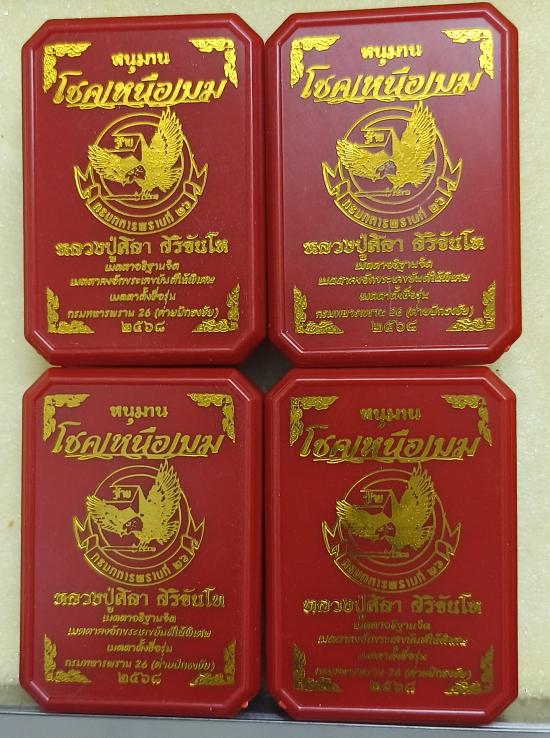 ผู้ชนะรับพระ 4 องคฺ์ เสื้อเกราะหนุมานโชคเหนือเมฆ ลป.ศิลา จัดสร้างโดยกรมทหารพรานที่ 26 (ค่ายปักธงชัย) สวยๆกล่องเดิมจำนวน 4 องค์วัดใจเคาะแรกแดงครับ |