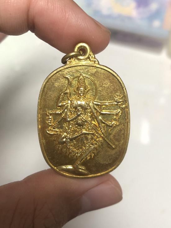วัดใจ เหรียญเจ้าแม่กาลี หลังยันต์ฮินดู ไม่ทราบที่ มีตอกโค้ด เนื้อกะไหล่ทอง
