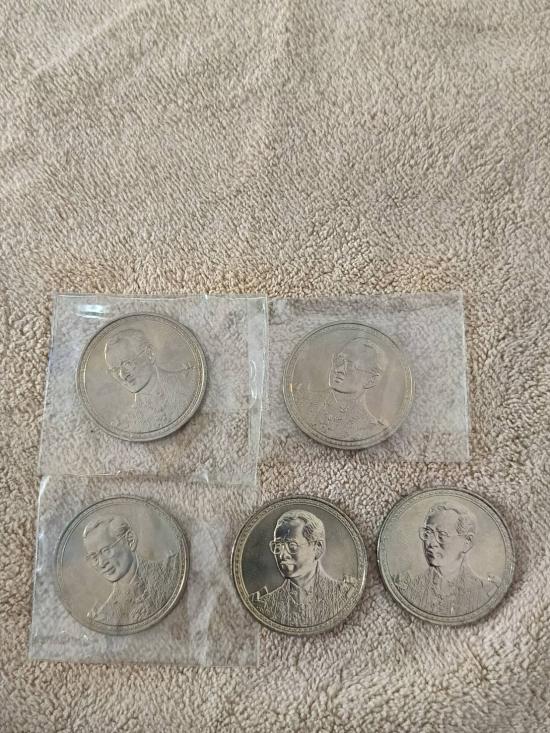 เหรียญ 20 บาท วาระ ที่ระลึก เฉลิมพระชนมพรรษาครบ 75 พรรษา รัชกาลที่ 9 จำนวน 5 เหรียญ
