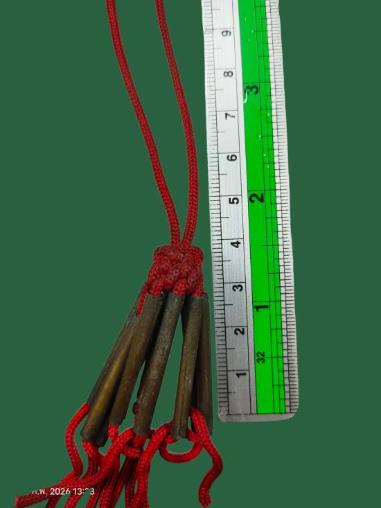 ตะกรุดกลุ่ม 9 ดอก เนื้อทองแดง ยาวประมาณ 3 ซม.สำหรับห้อยหน้ารถ ไม่รู้ที่วัดใจ 100 แดงครับ