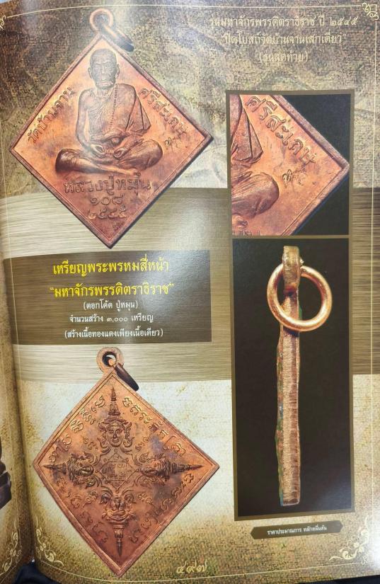 เหรียญพรหมสี่หน้าหลวงปู่หมุน จักรพรรดิตราธิราช ปี45 เนื้อทองแดง ตอกโค้ด (ตัดหูเหรียญ) มาพร้อมบัตร
