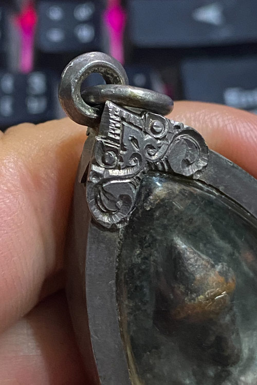 กรอบเงินขึ้นมือแกะลายคมๆเก่าๆ(แถมพระในกรอบไปด้วยครับตามภาพตงปก)