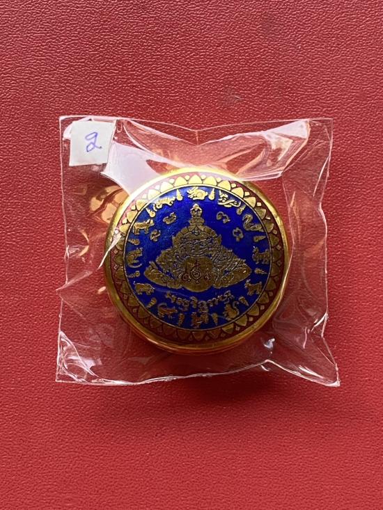 เนื้อ โลหะชุบทองลงยาสีน้ำเงิน ขอบสีแดง ขนาด3.2ซม |
