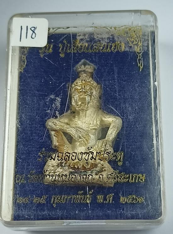 รูปหล่อ "ปู่เสือแสนเฮง" หลวงปู่แสน วัดบ้านหนองจิก (ขนาดสูง 4ซม.กว้าง 2ซม.) เนื้อเงิน ก้นอุดผง "ฝังตะกรุดทองคำ" เบอร์ 118 พร้อมกล่องเดิมครับ (น้ำหนัก 30.83 กรัม)