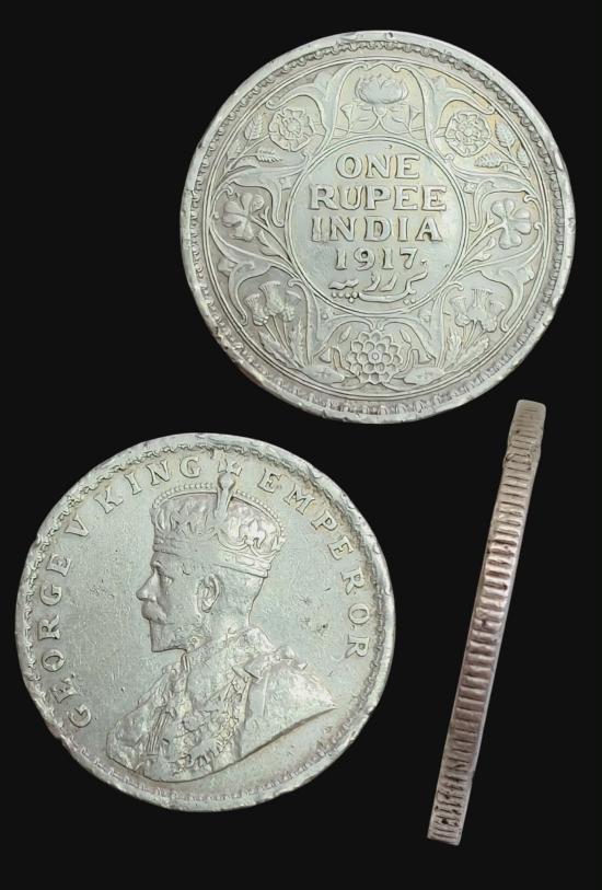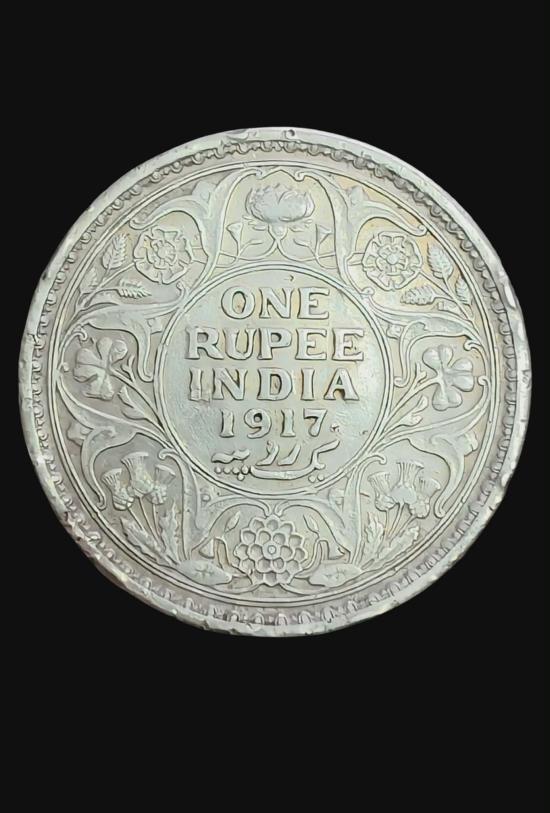 เหรียญ 1 รูปี ปี 1917 เนื้อเงิน 90 % นำ้หนัก 11.57 g เก่าน่าสะสม แท้รับประกัน