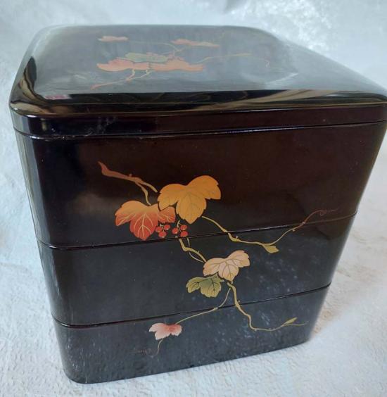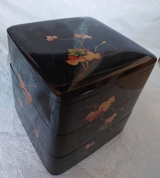 กล่องไม้เคลือบแล็กเกอร์สีดำสไตล์ญี่ปุ่น แบบซ้อนกัน 3 ชั้น จูบาโกะ (Jūbako)