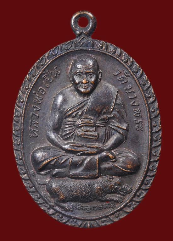 เหรียญนั่งหมู หลวงพ่อเปิ่น วัดบางพระ ปี2535 แดง120 |