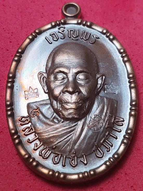 หลวงปู่เฮง ปภาโส รุ่นเจริญพร 8 รอบ ขอบปล้องอ้อย เนื้อทองแดงมันปู ตอกศาลา หลังยันต์เต็ม ตอกเลข 807 เคาะเดียว