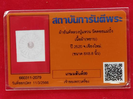 ผ้ายันต์หลวงปู่แหวน สุจิณโณ จัดสร้างปี2520 มาพร้อมบัตรรับรอง