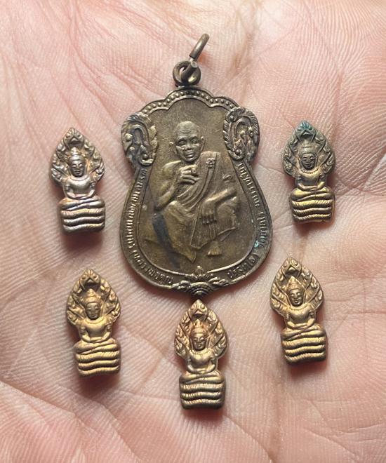 เหรียญหลวงพ่อคูณ ที่ระลึกสรงน้ำ ปี 2536 + ปรกจ้อย รุ่นคูณพันล้าน เนื้อทองแดง จำนวน 5 เหรียญ |