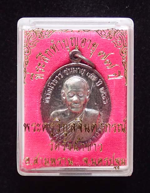 เนื้อเงินแท้ !!! เหรียญ มั่งมี ศรีสุข "ชนมายุ 77 ปี" พระครูวิบูลจินดาภรณ์ (ลพ.เหว่า) วัดวังน้ำขาว จ.นครปฐม (ลูกศิษย์เอกของท่าน ลพ.เงิน วัดดอนยายหอม) ปี 2546 เนื้อเงินแท้ สวยมาก...กล่องเดิมๆ
