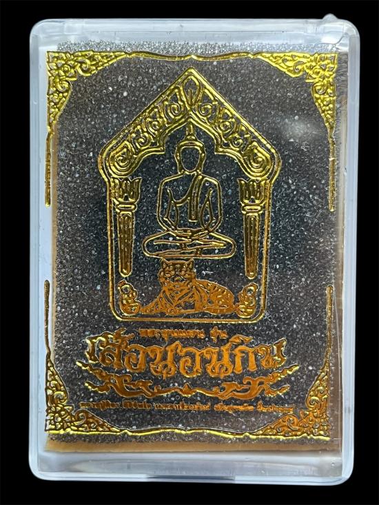 พระขุนแผน รุ่น เสือนอนกิน หลวงปู่ศิลา สิริจันโท จ.กาฬสินธุ์ เนื้อดำใบลาน (แจกในพิธี) No.47 พร้อมกล่องเดิมครับ