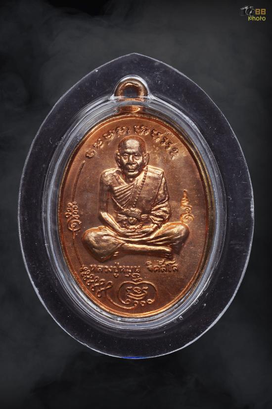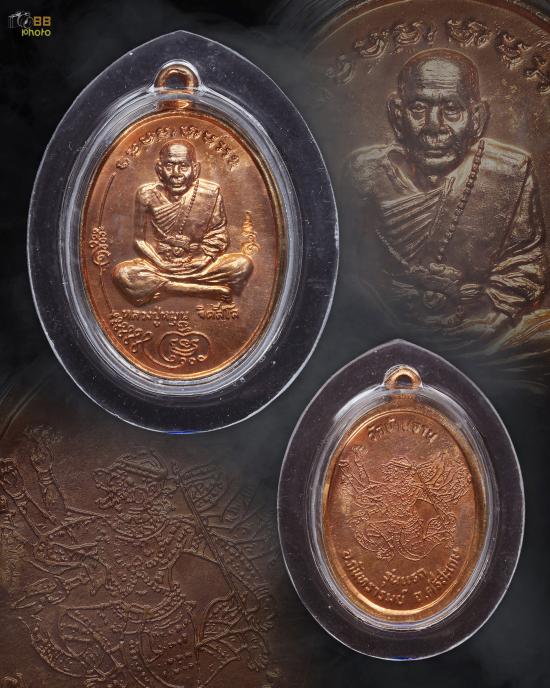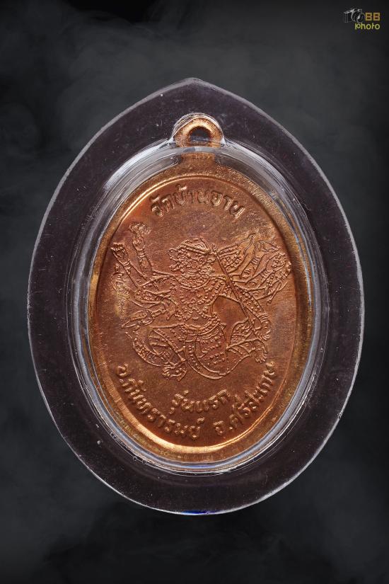 หลวงปู่หมุน บัตรสภาพสวย เหรียญมนต์พระกาฬเนื้อทองแดง รุ่นแรก พิมพ์เต็มองค์ วัดบ้านจาน ปี2543