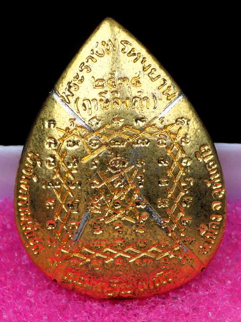 เหรียญหล่อหยดน้ำ หลังยันต์เกราะเพชร เนื้อโลหะชุบทอง หลวงพ่อฤาษีลิงดำ วัดท่าซุง (วัดจันทาราม) จ.อุทัยธานี พุทธาภิเษกในพิธีเป่ายันต์เกราะเพชร ปี 2535 สวยๆ 2